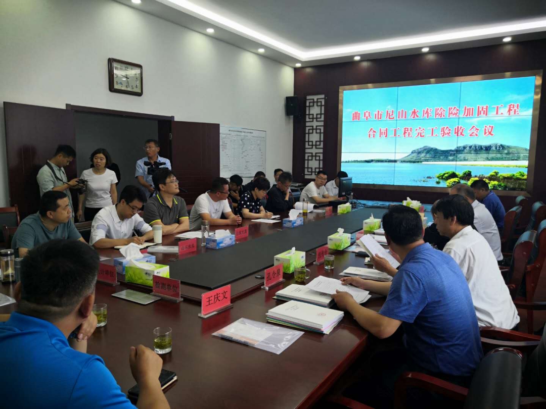 2020年5月30日上午,曲阜市尼山水庫管理局主持召開了曲阜市尼山水庫除險加固工程合同工程完工驗收會議。濟寧市城鄉(xiāng)水務(wù)局、曲阜市尼山水庫管理局、山東省水利勘測設(shè)計院、濟寧市水利工程建設(shè)監(jiān)理中心有限公司、山東省水利工程試驗中心、山東水總有限公司等單位的代表參加了會議。