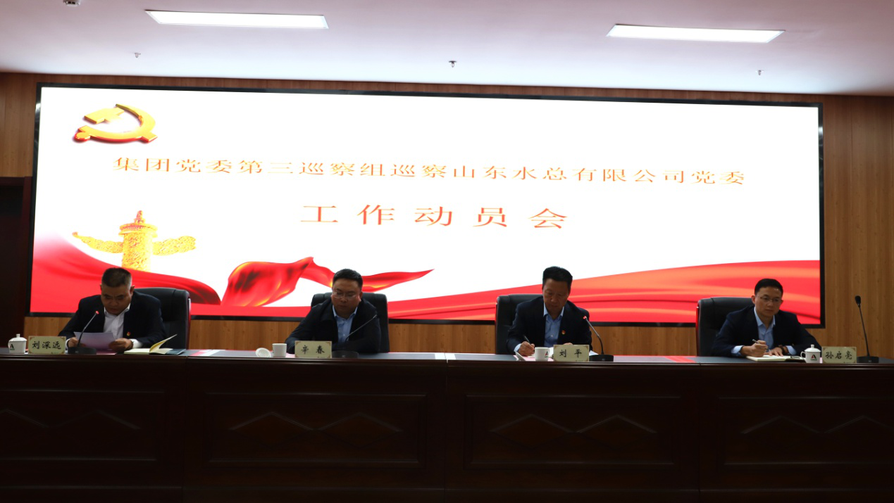 按照集團(tuán)黨委統(tǒng)一部署,集團(tuán)黨委第三巡察組自2021年10月11日起進(jìn)駐公司開展為期20天的巡察工作。10月11日上午,在公司二樓多功能廳召開巡察工作動(dòng)員會(huì)。集團(tuán)黨委巡察工作領(lǐng)導(dǎo)小組成員、巡察辦主任辛春,集團(tuán)黨委第三巡察組組長劉平,副組長孫啟亮及巡察組其他成員,山東水總有限公司領(lǐng)導(dǎo)班子成員及中層正副職干部及黨員、職工代表等出席會(huì)議。會(huì)議由公司黨委書記、董事長劉深遠(yuǎn)主持。