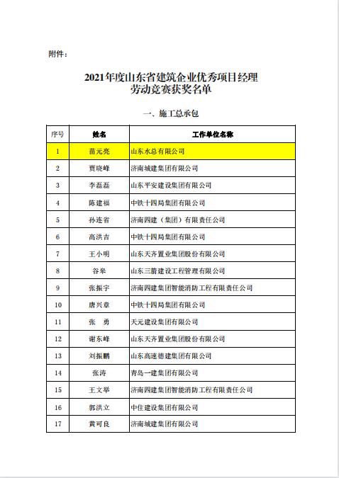 近日,由山東省建設(shè)工會和山東省建筑業(yè)協(xié)會組織開展的《2021年度山東省建筑企業(yè)優(yōu)秀項(xiàng)目經(jīng)理勞動競賽活動》落下帷幕,經(jīng)雙方組成的工作委員會評議審定和綜合評審,我公司苗元亮、盧正雷、蔡國森三名同志被評為“山東省建筑企業(yè)優(yōu)秀項(xiàng)目經(jīng)理”。此項(xiàng)殊榮是山東省建筑行業(yè)項(xiàng)目經(jīng)理的最高榮譽(yù),旨在鼓勵受表彰人員再接再厲,發(fā)揮引領(lǐng)示范作用,創(chuàng)建更多精品工程。
