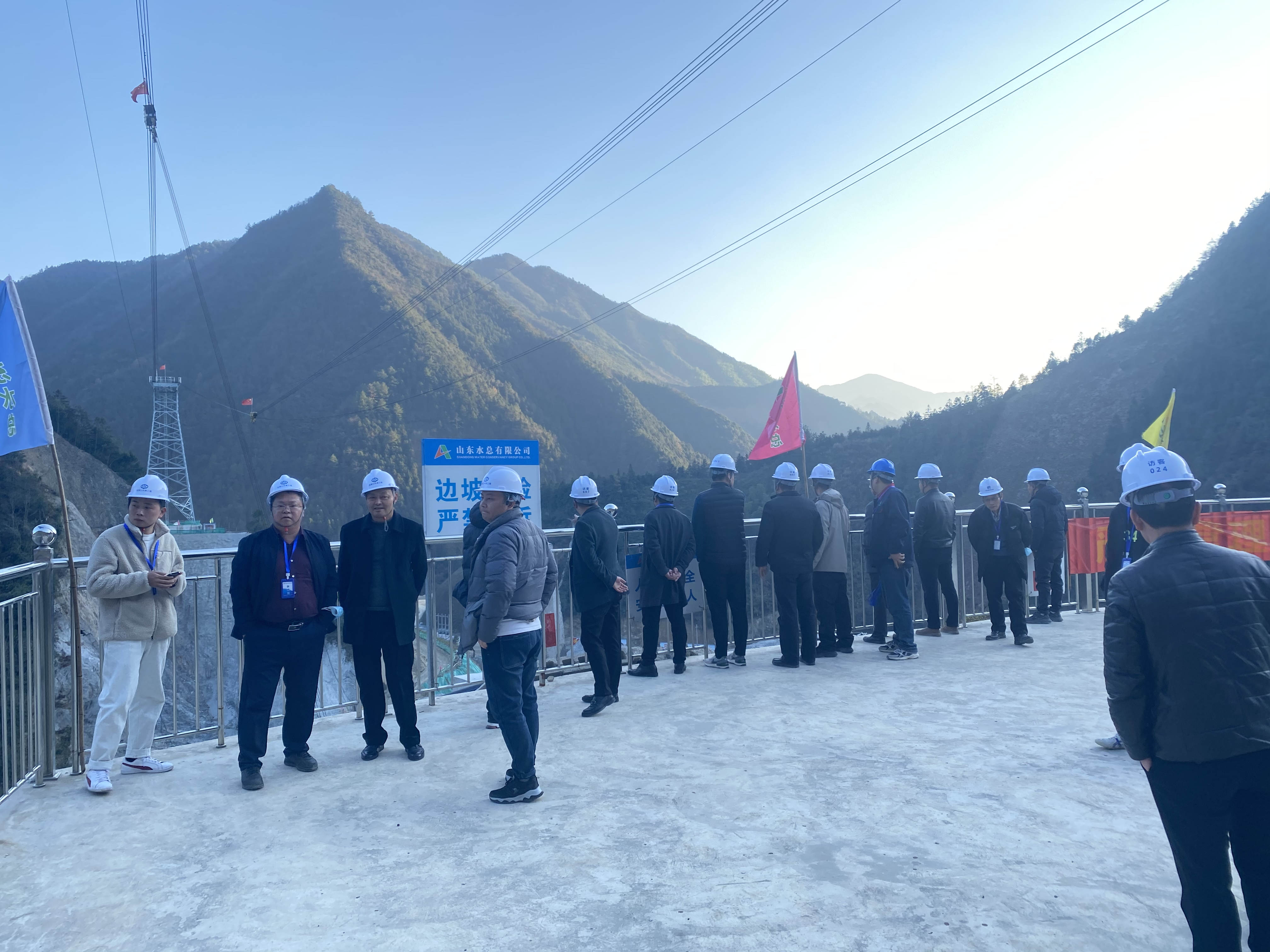 12月4日,遂昌縣水利局黨組副書記、副局長張水明,總工孟偉烽等一行十三人到臨安區(qū)雙溪口水庫工程參觀指導工作。杭州魯潤公司副總經(jīng)理孟天琦及相關(guān)人員陪同參觀了工程施工現(xiàn)場和項目標準化營區(qū)。
