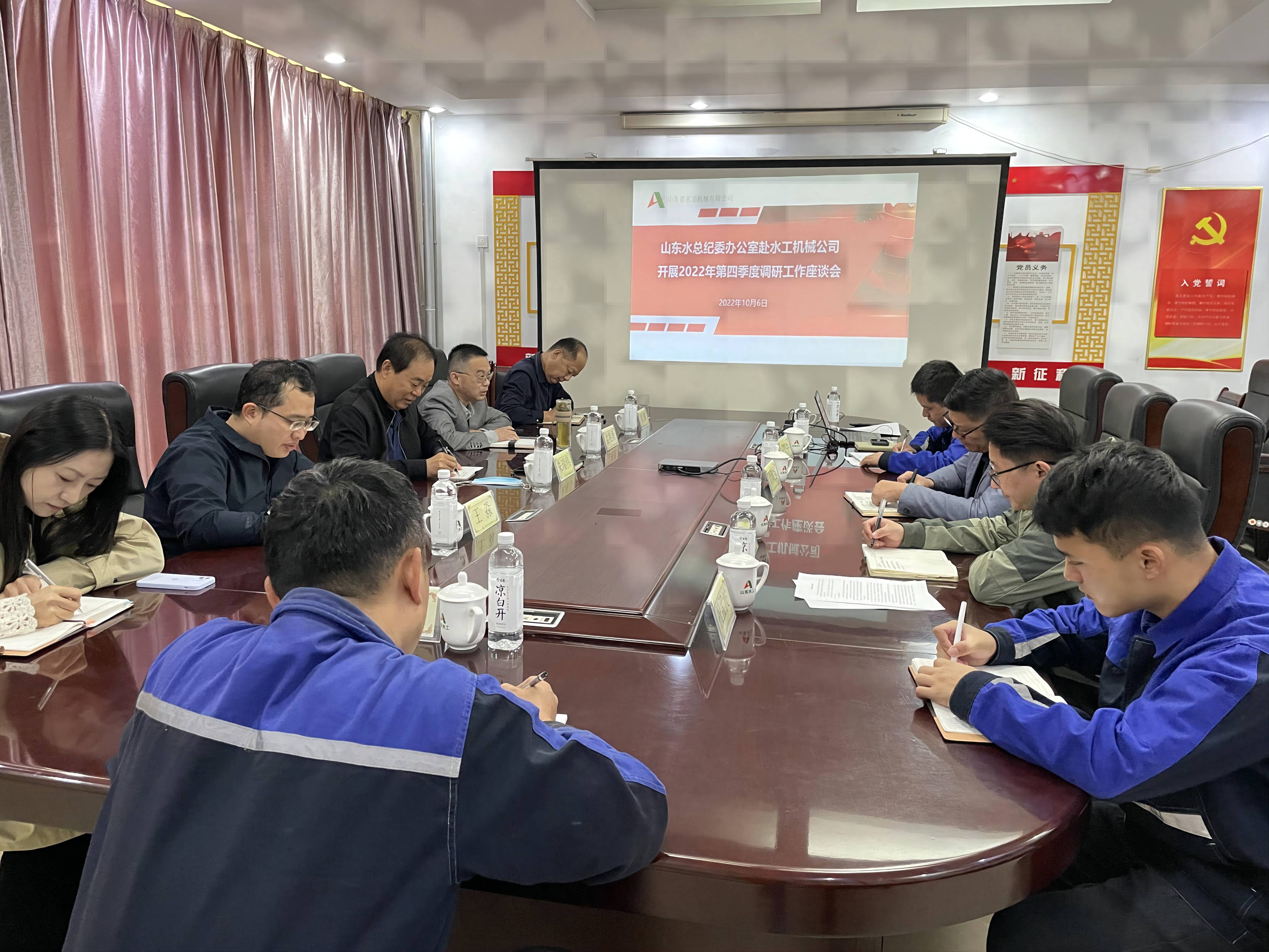 10月5日,調(diào)研組首先在水工機械公司三樓召開座談會,聽取水工機械公司機料采購、廢料處理、成本控制等情況匯報,以及公司在各項工作中遇到的難題及下一步工作措施,對有關(guān)問題給予現(xiàn)場指導(dǎo)。調(diào)研組指出,公司目前各項任務(wù)還十分艱巨,面對錯綜復(fù)雜的形勢和艱巨繁重任務(wù),要深入貫徹上級黨委的總體要求,堅決落實集團公司的各項決策部署,動員全體干部職工,積極應(yīng)對安全環(huán)保、生產(chǎn)經(jīng)營、產(chǎn)品質(zhì)量“三重”大戰(zhàn)大考,堅定信心、攻堅克難、苦干實干。隨后,調(diào)研組一行實地查看生產(chǎn)車間,了解項目進展,認(rèn)真檢查現(xiàn)場安全生產(chǎn)落實情況,聽取職工訴求和意見建議。