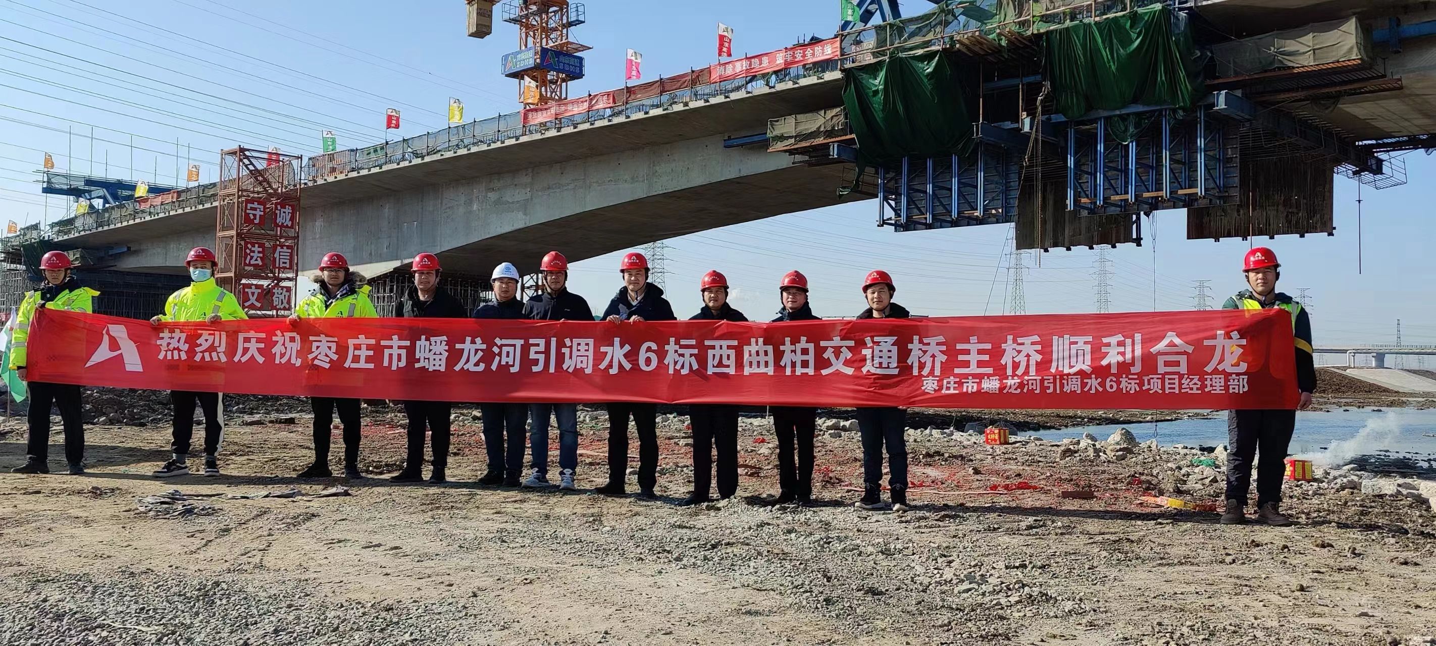 基礎(chǔ)有限公司棗莊市蟠龍河西曲柏交通橋主橋順利合龍