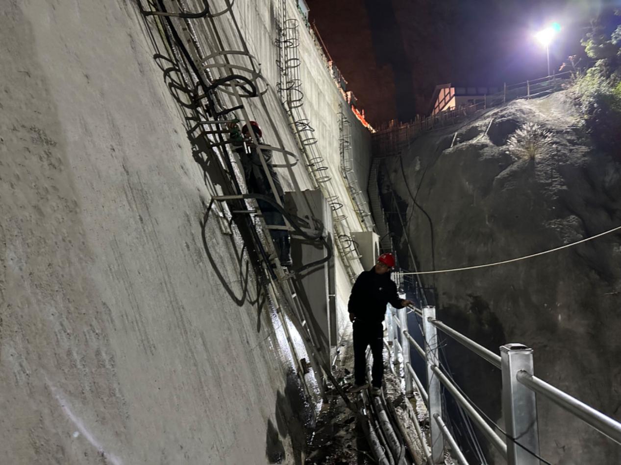 “屏漿時(shí)間已到,七層12灌區(qū)灌漿結(jié)束”,隨著對(duì)講機(jī)里傳來(lái)嘹亮的指令聲,杭州市臨安區(qū)雙溪口水庫(kù)工程封拱灌漿工作全部順利結(jié)束。雙溪口水庫(kù)工程常態(tài)混凝土重力拱壩壩高74.5米,封拱灌漿共七層劃分68個(gè)灌區(qū)。封拱灌漿工作于2023年2月11日順利啟動(dòng),至3月底完成一層~四層灌漿,2023年12月5日~12月28日完成五層~七層灌漿。在灌漿施工過(guò)程中壩體溫度、橫縫張開(kāi)度、混凝土齡期、蓋重、相鄰灌區(qū)灌漿間隔時(shí)間等重要技術(shù)指標(biāo)均符合設(shè)計(jì)及規(guī)范要求,經(jīng)自檢、抽檢、平行檢測(cè)質(zhì)量檢查全部合格。