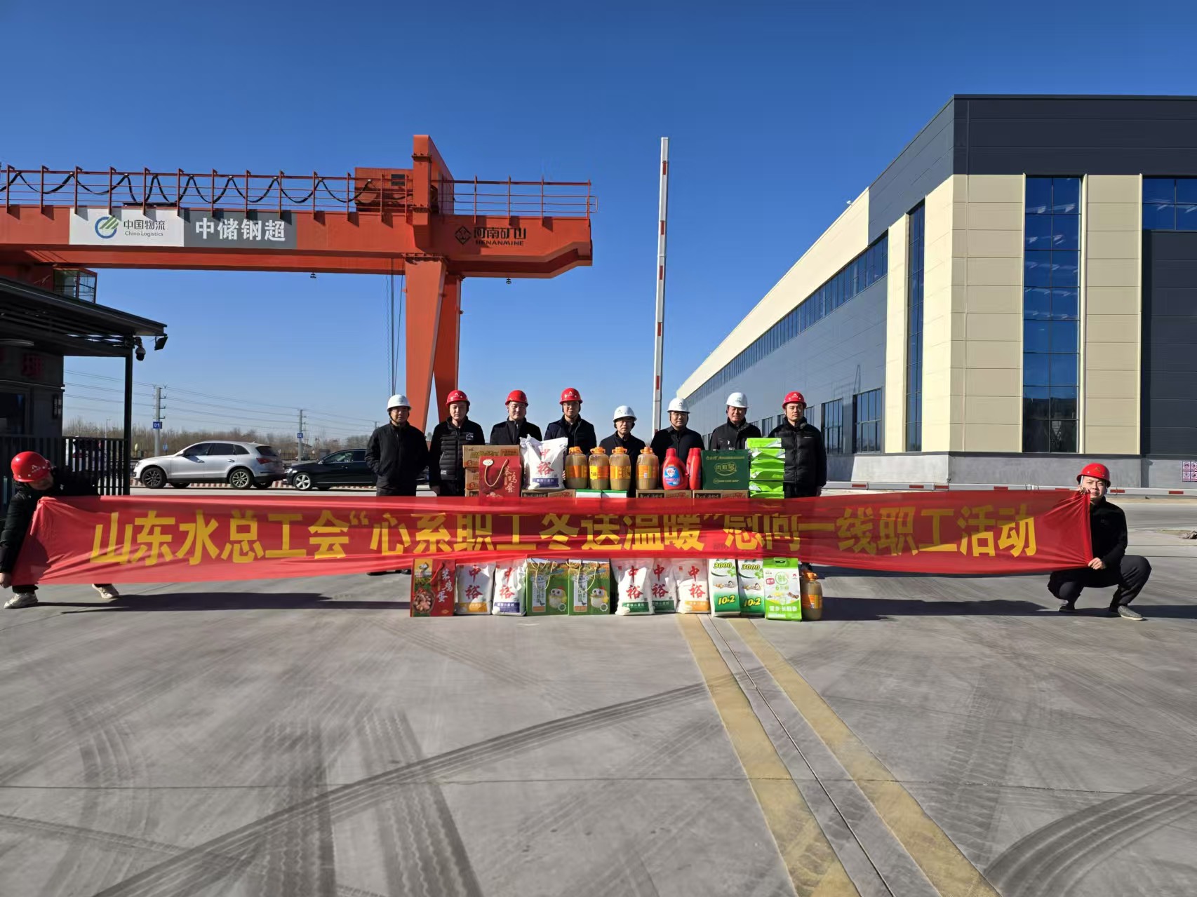 1月8日,公司黨委委員、副總經(jīng)理袁英杰一行到山東小清河倉儲(chǔ)物流有限公司倉儲(chǔ)物流項(xiàng)目開展“心系職工,冬送溫暖”活動(dòng)。第五分公司總經(jīng)理蔡國森陪同。