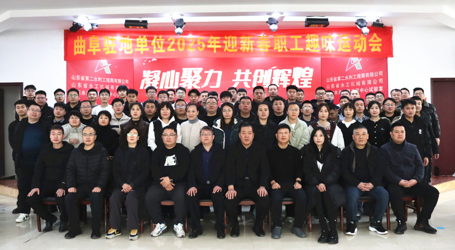 祥龍回首留勝景,金蛇起舞賀新程。為豐富干部職工文化生活,鼓舞廣大干部職工精神斗志,增強(qiáng)公司凝聚力和向心力,激發(fā)黨員干部干事創(chuàng)業(yè)的熱情,1月24日,山東水總駐曲各公司、部門全體干部職工喜氣洋洋、歡聚一堂、歡度佳節(jié)、共話友誼,舉辦了一場別開生面、興趣盎然的“凝心聚力共創(chuàng)輝煌”2025年迎新春職工趣味運(yùn)動會。