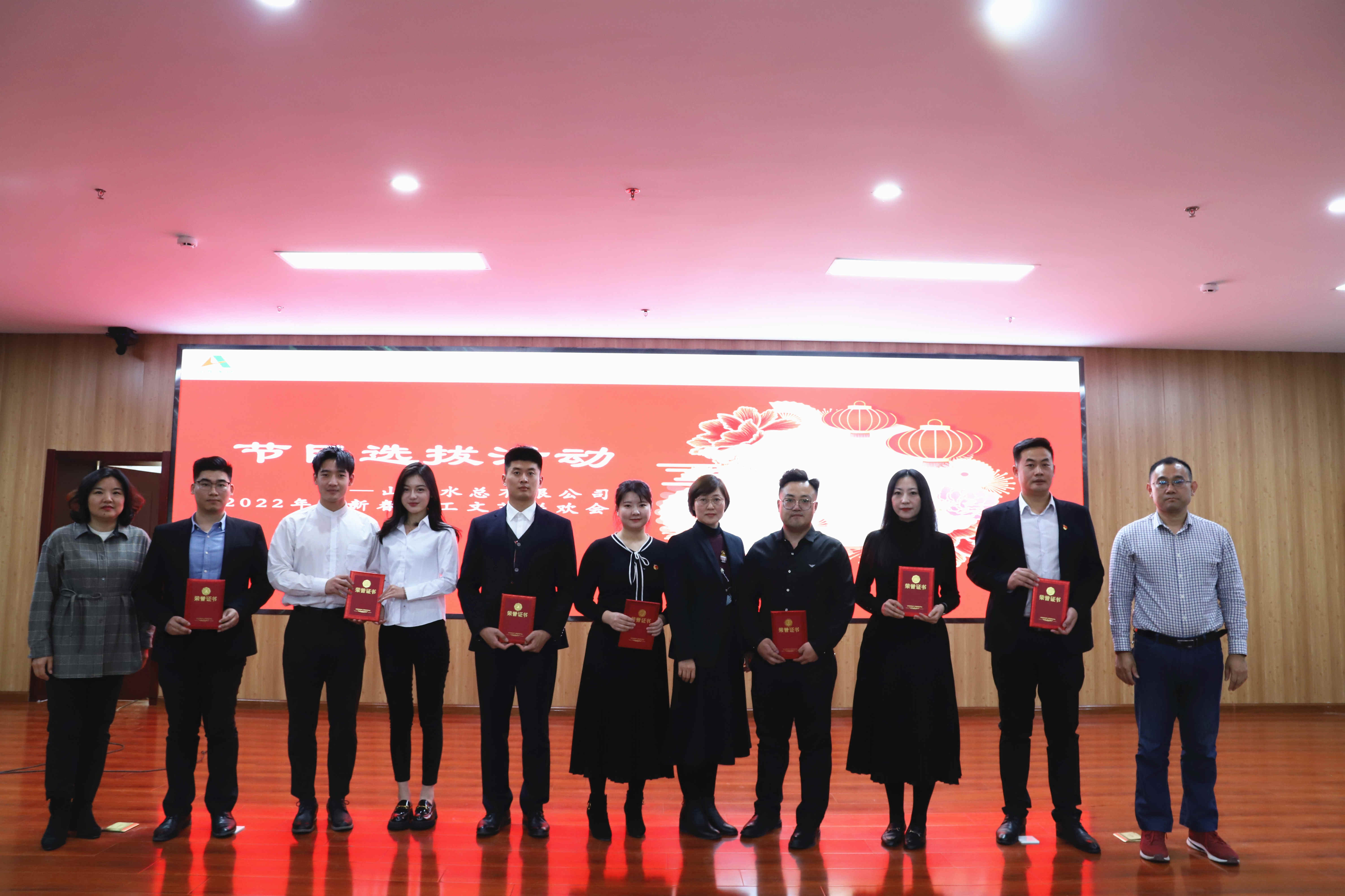 春風(fēng)傳喜訊,瑞虎踏歌來(lái)。山東水總2022年迎新春職工文藝聯(lián)歡會(huì)節(jié)目選拔賽活動(dòng)在《百年風(fēng)雨 砥礪奮進(jìn)》詩(shī)歌朗誦中拉開(kāi)帷幕,選拔活動(dòng)由歌曲、朗誦、樂(lè)器表演等15個(gè)節(jié)目組成,全方位展現(xiàn)了公司職工熱愛(ài)偉大祖國(guó)、追夢(mèng)偉大時(shí)代、奉獻(xiàn)偉大事業(yè)的精神風(fēng)貌,以實(shí)際行動(dòng)表達(dá)謳歌了國(guó)家發(fā)展的輝煌成就?,F(xiàn)場(chǎng)評(píng)委由公司領(lǐng)導(dǎo)、部室負(fù)責(zé)人代表及職工代表組成。
