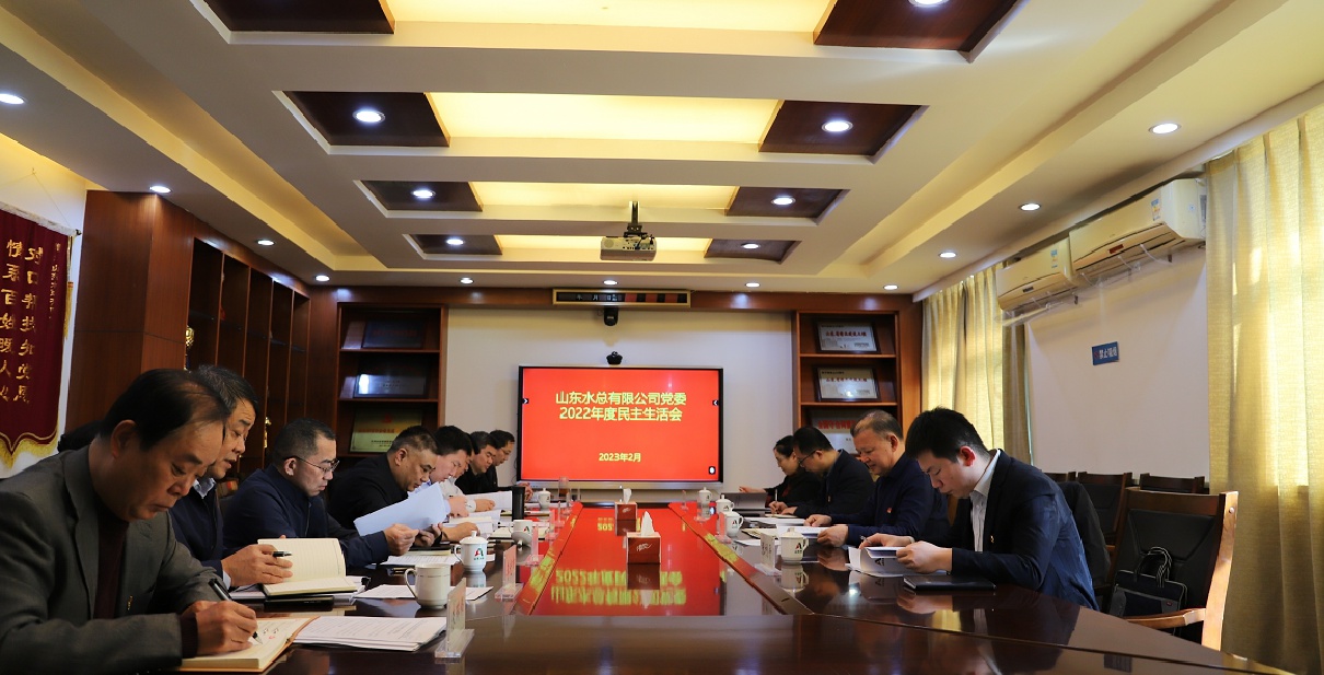 2月13日,山東水總有限公司黨委召開2022年度民主生活會。公司黨委書記、董事長劉深遠主持會議并作總結講話,集團黨委第三督導組成員到會指導。